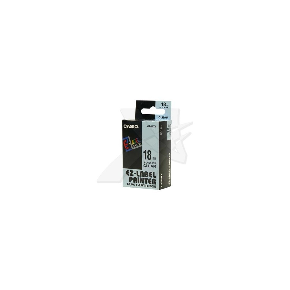 Casio originální páska do tiskárny štítků, Casio, XR-18X1, černý tisk/průhledný podklad, nelaminovaná, 8m, 18mm